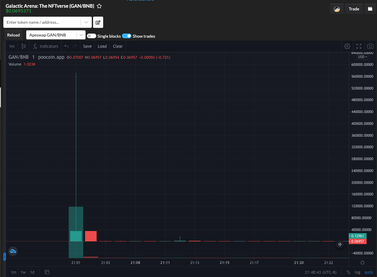 As mentioned previously, the initial price is set by the FIRST liquidity added. As a result, one GAN token was valued around $1.13 per token. In comparison to the presale rate ($0.005 per token) according to the Poolz website, the listing rate was 226x higher than the presale tokens