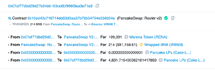However, on pancake swap launch time, Warena could add any liquidity they want to the pancake pair – in this case, they added the following: