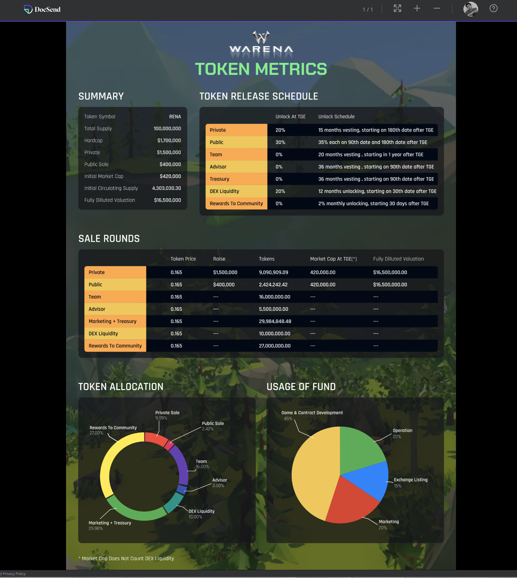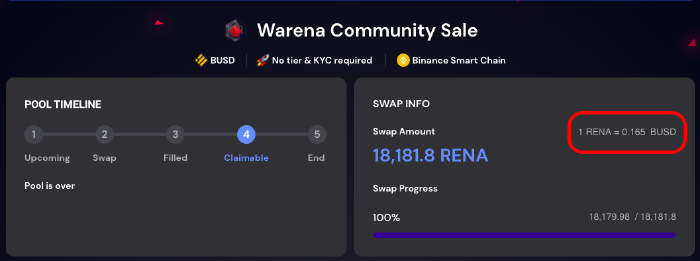 Those IDOs will sell the tokens on their respective platforms for a favoriable rate. For example, Warena was sold for 0.165 BUSD per 1 Warena on Redkite.